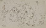 4. Manuscrit autographe, recopiant pour Ernest Delahaye le poème d’Edgar Allan POE, Hymn, [Boston 23 mai 1876] (1 feuillet in-8 à l’encre brune recto verso, 13,2 x 20,5 cm), avec cette note : « Si tu veux, la prochaine fois je t’enverrai Le Corbeau – merveille d’art et d’anglais ». En dessous du poème, DESSIN de Verlaine dans lequel il se représente portant sur son dos son parapluie et sa valise à l’adresse « Mr Verlhuppe. Londomphe », à gauche une esquisse de Londres (Londe) et à droite de Boston (Bostel). Au verso, autre DESSIN à pleine page, légendé : « Mercredi 16 mai. Regain de la Foire. Gaités champêtres. Pas soiffards les ruraux d’ici, non ! » ; Verlaine s’est représenté debout à gauche, coiffé de son grand chapeau, avec son parapluie et un album dans les mains, entouré de plusieurs Anglais se promenant en famille, et au fond l’usine leo (Correspondance générale, partie du 76-10).