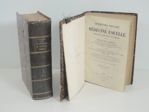 DICTIONNAIRE POPULAIRE DE MEDECINE USUELLE D'HYGIENE PUBLIQUE ET PRIVEE par le DOCTEUR PAUL LABARTHE, PARIS, MARPON ET FLAMMARION, sd. 2 vol, texte sur deux colonnes, nombreuses illustrations. Demi bas, titre or et dos fileté. Reliure usagée.