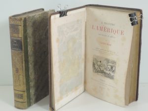 L'AMERIQUE SEPTENTRIONALE ET MERIDIONALE, DESCRIPTION DE CETTE GRANDE PARTIE DU MONDE, ORNE DE GRAVURES, PARIS 1835. Demi bas dos orné. Reliure usagée. JOINT : A TRAVERS L'AMERIQUE par LUCIEN BIART, PARIS sd. Nombreuses illustrations. Reliure usagée.