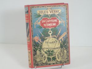 JULES VERNE, UN CAPITAINE DE QUINZE ANS, bibliothèque d'éducation et de récréation, HETZEL sd. Dessins par MEYER, gravures par CH. BARBANT. 376 p, catalogue d. Cartonnage au globe doré, plaque de BLANCHELAND, RELIURE DE ENGELS. DOS FROTTE,...