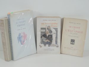 PIERRE MAC ORLAN, 4 VOL BROCHES : LES BOURREURS DE CRANES, PARIS 1917, ILLUSTRATIONS DE GUS DE BOFFA, papier jauni, LE CHANT DE L'EQUIPAGE, CRES 1918 éd originale, illustrations de GUS BOFFA, SOUS LA LUMIERE FROIDE, EMILE PAUL 1925, éd originale,...