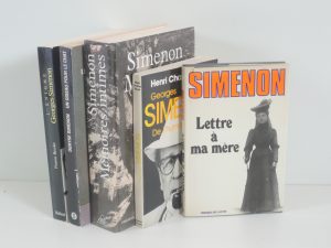 FENTON BRESLER, L'ENIGME GEORGES SIMENON, DENYSE SIMENON, UN OISEAU POUR UN CHAT 1978, SIMENON, MEMOIRES INTIMES SUIVIS DU LIVRE DE MARIE -JO 1989, HENRI CHARLES TAUXE, GEORGES SIMENON, DE L'HUMAIN AU VIDE 1983, SIMENON, LETTRE A MA MERE 1974.