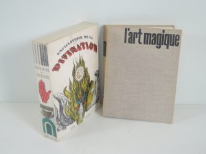 L'ART MAGIQUE, avec la collaboration d'ANDRE BRETON, club du livre 1957. Nombreuses illustrations, pleine toile éditeur, verso garde fendue. ENCYCLOPEDIE DE LA DIVINATION, TCHOU 1965. Illustré à partir de documents anciens. Reliure éditeur +...
