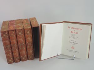 LE DECAMERON DE BOCCACE, LE CHANT DES SPHERES, EDITION D'ART SEFER, NICE 1978. ILLUSTRATIONS DE JEAN GRADASSI. 5 vol in 8°, 1697/2408 sur vélin. RELIURE EDITEUR EN PLEINE PEAU MAROQUINEE, TETE OR. 5 vol in 8°, 1697/2408 sur vélin. DOS ET PLATS...
