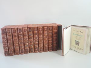 LES CHEFS-D'OEUVRE DE SHAKESPEARE, CHANT DES SPHERES, EDITIONS D'ART SEFER, NICE 1974. Illustrations DE JEAN GRADASSI. 12 vol in 4, 2513/3451 sur vélin. Reliure éditeur en pleine peau maroquinée, tête or, plats et dos richement ornés et...