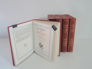 VOLTAIRE, LES CONTES, ARTS ET COULEURS JOSEPH PARDO, MONTE CARLO 1983. ILLUSTRATIONS DE DA ROS. 4 vol in 8°, 873/1630 sur vélin. Reliure éditeur en pleine peau maroquinée, tête or, dos et plats richement ornés de motifs dorés et estampés à...