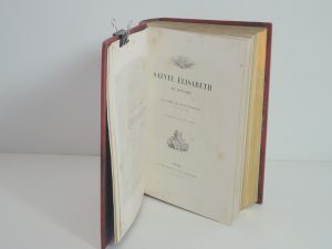 SAINTE ELISABETH DE HONGRIE par le COMTE DE MONTALEMBERT,TOURS 1878. Nombreuses illustrations. Un fort vol, reliure éditeur en demi chag, tranche or, plats et dos richement ornés. Quelques rousseurs.