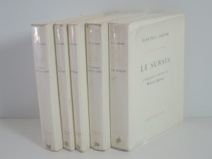 JEAN PAUL SARTRE, OEUVRE ROMANESQUE, EDITION LIDIS 1964-1965. LE MUR, LA NAUSEE, L'AGE DE RAISON, LE SURSIS, LA MORT DANS L'AME. LITHOGRAPHIE DE WALTER SPITZER. 5 vol brochés sous couv rempliée.
