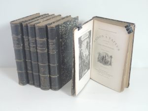 LOT JULES VERNE : CINQ SEMAINES EN BALLON, VOYAGE AU CENTRE DE LA TERRE, ILLUSTRATIONS DE RIOU ET DE MONTAUT. LA MAISON A VAPEUR ,DESSINS PAR BENETT. LES ENFANTS DU CAPITAINE GRANT, VIGNETTES PAR RIOU. DE LA TERRE A LA LUNE, DESSINS DE DE MONTAUT,...