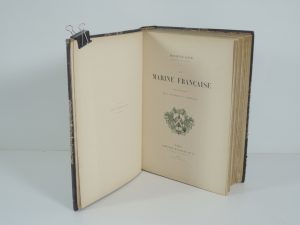 MAURICE LOIR, LA MARINE FRANCAISE, PARIS, HACHETTE 1893. ILLUSTRATIONS DE L. COUTURIER et F. MONTENARD. 1 vol in 4°, 620 p. Couv conservée. Reliure solide en demi chag à coins, tête or, titre, entre nerfs à encadrement, filets or mors et...