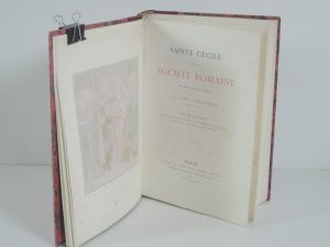 SAINTE CECILE ET LA SOCIETE ROMAINE aux deux premiers siècles par DOM GUERANGER, PARIS 1874. Nombreuses illustrations dont deux chromos. 1 vol in 4°, 576 p, couv conservées. Demi bas, titre or.
