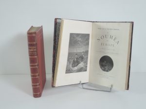 PAUL DU CHAILLU, L'AFRIQUE SAUVAGE, nouvelles excursions au pays des ASHANGOS, PARIS, MICHEL LEVY 1868. illustrations et carte en fin de vol. 1 vol in 4°, 411 p. Demi chag, tranche or, titre or. JOINT : DE NOUMEA EN EUROPE, PARIS, sd. 1 vol, demi...