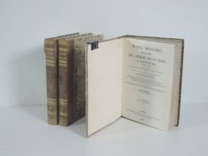 FRANCE MILITAIRE. HISTOIRE DES ARMEES FRANCAISES DE TERRE ET DE MER de 1729 à 1833, PARIS, CHEZ BELLOYE 1833. Tome 1 312 p, 320 p, 320 p. Très nombreuses illustrations, texte sur deux colonnes. In 4°. Demi veau, titre deux pièces, palettes. Dos...