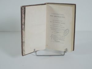 L'EXPEDITION DES ARGONAUTES, OU LA CONQUETE DE LA TOISON D'OR, poème en quatre chants par APOLLONIUS DE RHODES, PARIS, MOUTARDIER 1797. EDITION ORIGINALE. In 8°, 56 p, 400 p. RELIE EN PLEINE BAS RACINEE, TITRE SUR PIECE, DOS ORNE. MORS VERSO UN PEU...