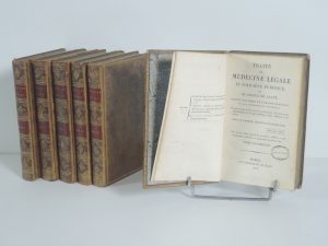 TRAITE DE MEDECINE LEGALE ET D'HYGIENE PUBLIQUE ou de police de santé adapté aux codes de l'Empire Français et aux connaissances actuelles. PAR F.E. FODERE, PARIS, MAME 1813. Complet en 6 tomes, in 8°, lxxxiv, 502 p, 492 p, 483 p, 526 p, 502 p,...