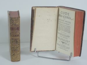 CODE DES CURES ou NOUVEAU RECUEIL DES REGLEMENTS CONCERNANT LES DIXMES, LES PORTIONS CONGRUES, LES FONCTIONS, PRIVILEGES DES CURES, VICAIRES PERPETUELS... PARIS 1752. 2 vol in 12, 662 p, 674 p, xxij. PLEIN VEAU MARBRE, TITRE ET TOMAISON SUR PIECE,...