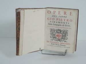 OPERE DEL PADRE GIO PIETRO PINAMONTI DELLA COMPAGNIA DI GESU, CON UN BREVE RAGGUAGLIO DELLA SUA VITA, NICOLO PEZZANA VENEZIA 1714. in 8°, 14 p, 798 p, texte sur deux colonnes. PLEIN VEAU, TITRE SUR PIECE, DOS ORNE. COINS EMOUSSES.