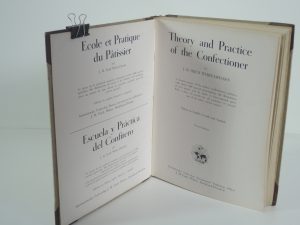ECOLE ET PRATIQUE DU PATISSIER par J.M.ERICH WEBER-DRESDE, BUREAU INTERNATIONAL DE PUBLICATION, sd. Édition en ANGLAIS, FRANCAIS ET ESPAGNOL. NOMBREUSES ILLUSTRATIONS ET TABLEAUX EN COULEURS. In 4°, 444 p. Reliure éditeur en demi chag à coins,...
