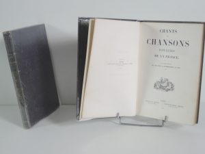 CHANTS ET CHANSONS POPULAIRES DE LA FRANCE, avec airs notés et accompagnements de piano, PARIS, PLON, LECRIVAIN ET TOUBON 1858. 2 vol in 8°. PLEINE TOILE, TITRE ET TOMAISON. ON Y TROUVE ACCOMPAGNES D'ILLUSTRATIONS GRAVEES LE BON ROI DAGOBERT, AU...