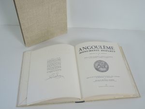 ANGOULEME, MONUMENTS DISPARUS, préface de J.A. CATALA, TEXTES DE MICHON, GABORIT, DE CHANCEL... ANGOULEME 1963. PLAN DU VIEIL ANGOULEME ET DIX EAUX-FORTES par MAURICE-GEORGES RABRE SIGNEES ET AVEC LEGENDES MANUSCRITES. In 8°, 69 p, 127 /165 sur...