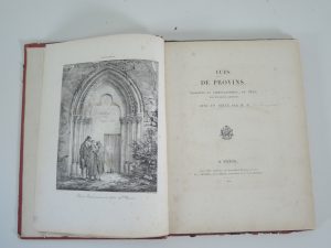 VUES DE PROVINS, DESSINEES ET LITHOGRAPHIEES EN 1822, avec un texte par M. D. SOMMERARD, PARIS 1822. in folio, 33 planches lithographiées par COLIN, VILLENEUVE, DEROY… DEMI CHAG A GRAINS LONGS, TITRE ET FILETS OR. RELIURE USAGEE.