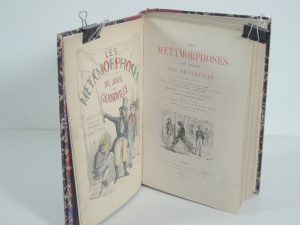 LES METAMORPHOSES DU JOUR PAR GRANVILLE accompagnées d' un texte de M M. ALBERIC SECOND, LOUIS LURINE, CLEMENT CARAGUEL... NOTICE SUR GRANDVILLE par CHARLES BLANC, PARIS, GARNIER 1869. in 4° lxiii, 480 p, frontispice, bandeaux, culs de lampe, 70...