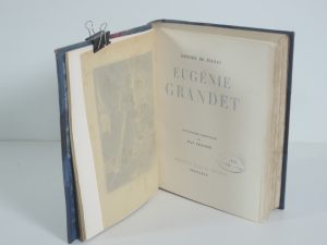 HONORE DE BALZAC, EUGENIE GRANDET, GRENOBLE, MARCEL BESSON 1944. in 8°, 268 p, 19 eaux fortes de JEAN TRAYNIER, 105/555 sur vélin, en fin de vol est reliée la suite en noir avec remarque. DEMI BAS A COINS, TITRE OR AU CENTRE DE SIX GROS NERFS. ...