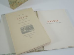 GERARD DE NERVAL, SYLVIE, CHEZ PAUL EMILE COLIN, BOURG-LA-REINE 1946. TRENTE BOIS ORIGINAUX PAR PAUL EMILE COLIN. In 8 raisin, 138 p, tiré à 171 exp, 9/41 sur vélin d'arches BROCHE SOUS COUV REMPLIEE. A PART DANS UNE CHEMISE PAPIER AVEC TITRE UNE...
