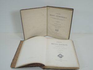 JOURNAL DE MENUISERIE SPECIALEMENT DESTINE AUX ARCHITECTES ET AUX ENTREPRENEURS par ADOLPHE MANGEANT, PARIS 1865. 46 planches montées sur onglets. Demi chag, titre or. REL ABIMEE. V.DARCHEZ, COURS DE DESSIN GEOMETRIQUE, PARIS 1879. DEMI BAS,...
