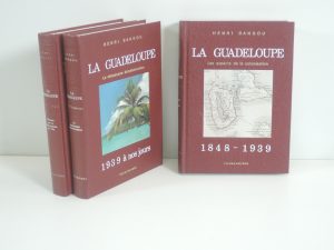 HENRI BANGOU, LA GUADELOUPE, histoire de la colonisation de l'ile, 1492-1848, 1848-1939, 1939 à nos jours. 3 vol, plein skivertex titre au dos et sur plat.