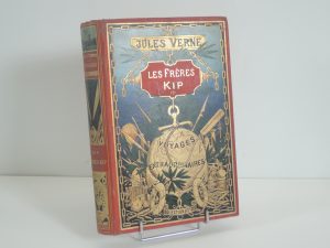JULES VERNE, LES FRERES KIP, COLLECTION HETZEL, PARIS, sd. ILLUSTRATIONS DE GEORGES ROUX. CARTONNAGE AU GLOBE DORE, DOS AU PHARE. MANQUE UNE GARDE VOLANTE, CARTONNAGE DEFORME.