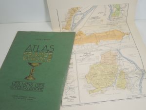 LOUIS LARMAT, ATLAS DE LA FRANCE VINICOLE, LES VINS DES COTES DU RHONE, 1943. 23 p, 4 cartes sous couverture. DOS FRAGILE.