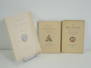 ALFRED DE MUSSET, LES NUITS, FERROUD, PARIS 1927. ILLUSTRATIONS DE WILLIAM FEL. SUR VELIN, non numéroté. ANATOLE FRANCE, BALTHASAR, FERROUD, PARIS 1925. ILLUSTRATIONS DE SERGE DE SOLOMKO. 337/1500 sur vélin. BROCHE. COMME NEUF. LE MOINE...