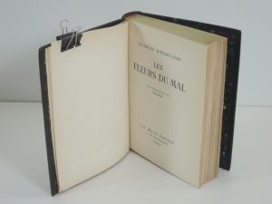 BAUDELAIRE, LES FLEURS DU MAL, LA BELLE EDITION, PARIS 1950. ILLUSTRATIONS DE CHIMOT. DEMI MAROQUIN A LARGES BANDES, TETE OR, TITRE SUR PIECE SERTIE D'UN FILET OR, FILETS TETE ET QUEUE, FILET DE MORS. BONNE RELIURE.
