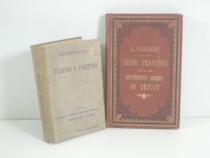 PLANTES A PARFUM par PAUL HUBERT, DUNOT et PINAT, PARIS 1909. NOMBREUSES ILLUSTRATIONS. CARTONNAGE EDITEUR. JOINT : A. CASSAGNE, GUIDE PRATIQUE POUR LES DIFFERENTS GENRES DE DESSINS, PARIS 1886. PLANCHES, CROQUIS, EN FIN DE VOL DES ECHANTILLONS DE...