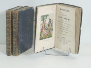 HISTOIRE DES VOYAGES, L'AMERIQUE, guerres,mœurs… par JULES DUFAY, PARIS, DE COURVAL EDITEUR ,1826.3 vol in 12, gravures en couleurs. DEMI BAS, DOS FILETE, TITRE ET TOMAISON, FLEURONS. RELIURE USAGEE.