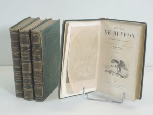 OEUVRES DE BUFFON, avec les suppléments de LACEPEDE, CUVIER, REAUMUR, par M. MORIN, PARIS VERMOT sd, (1860). Animaux domestiques, carnassiers et rongeurs, oiseaux, insectes, reptiles, poissons. Nombreuses illustrations dans le texte et à pleine...