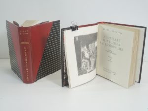 EDGARD ALLAN POE, HISTOIRES EXTRAORDINAIRES, NOUVELLES HISTOIRES EXTRAORDINAIRES, COLLECTION MAZARINE, LIBRAIRIE GRUND A PARIS 1941. ILLUSTRATIONS DE GUS BOFFA. EXEMPLAIRE XLV AVEC SUITE RELIEE EN FIN DE VOL. RELIURE EN CHAG A LARGES BANDES OBLIQUES...