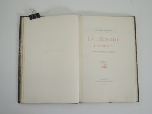 CURIOSA : LA LEGENDES SEXES par LE SIR DE CHAMBLEY ( EDMOND HARAUCOURT), POEMES HYSTERIQUES ET PROFANES. EDITION PRIVEE, REVUE PAR L'AUTEUR, BRUXELLES 1893. in 4°, imprimé sur vergé, 90 p. 10 DESSINS TRES LIBRES AQUARELLES DEMI MAROQUIN A COINS,...