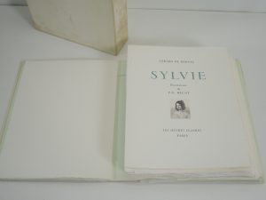 GERARD DE NERVAL, SYLVIE, LES HEURES CLAIRES PARIS, 1949. ILLUSTRATIONS DE P.E. BECAT, SUITE EN NOIR ET BLANC AVEC REMARQUE EN FIN DE VOL. in 4°, 103/135 sur vélin, exemplaire nominatif avec DEDICACE DE BECAT. EN FEUILLES SOUS COUV REMPLIEE....