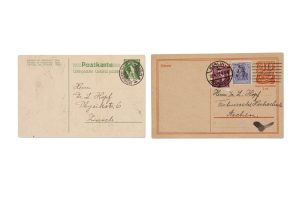 EINSTEIN ALBERT (1879-1955). 2 L.A.S., 1910-1922, au Dr Ludwig HOPF, à Zurich puis Aachen ; 1 page in-12 chaque avec adresse au dos (Postkarte) ; en allemand.
