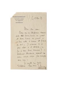 LACAN JACQUES (1901-1981), PSYCHIATRE ET PSYCHANALYSTE. L.A.S., Paris 13 novembre 1933, à un ami ; 1 page in-8 à son en-tête Docteur Jacques Lacan chef de clinique à la Faculté (un peu froissée, un coin manquant sans perte de texte).