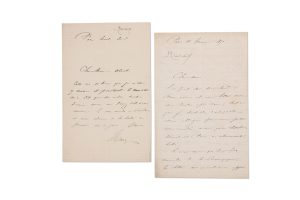 MAREY ÉTIENNE-JULES (1830-1904), MÉDECIN ET PHYSIOLOGISTE, CRÉATEUR DE LA CHRONOPHOTOGRAPHIE. 2 L.A.S., Paris 1871 et s.d., à Edmond ABOUT ; 4 pages in-8 et 1 page in-8.