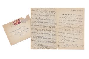 Charmante lettre illustrée pendant une mission d’exploration dans le Soudan français (Mali actuel).