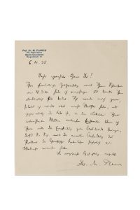 PLANCK MAX (1858-1947), PHYSICIEN ALLEMAND. L.A.S., Berlin-Grunewald 6 avril 1935, à un Docteur ; 1 page petit in-4 à son en-tête et adresse ; en allemand.