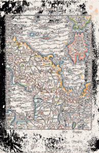 MUNSTER Sebastian. Partie de l’Italie et Corse. Probablement 1552. In Cosmographie universelle, 23 x 17 cm. Feuillet M2, p. 143, au dos texte en français, et bois gravé. Aquarellée, belle représentation. Petites restaurations marginales au dos.