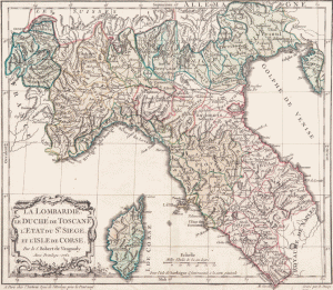 HÉRISSON. Carte générale d’Italie dressée par Hérisson, élève du Cen Bonne. À Paris, chez Basset, 1797. 77 x 53 cm, limites aquarellées.