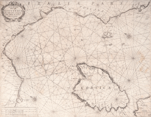 [GOOS Peter]. – Carta maritima della costa ligustica fra C. Delle Melle e M. Argentato con l’Isola di Corsica et alter circonvicine. [1664]. – Carte marine. Selon la note manuscrite qui accompagne cette carte, il pourrait s’agir d’une...