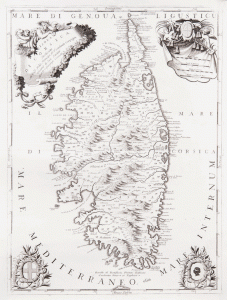 • une autre carte de la Corse et de la Sardaigne, de Cluverius, probablement XVIIe. 12 x 12,5 cm, déchirure sans manque.