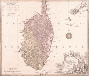 LOTTER, TOBIAS Conrad et LOTTER Georg Friedrich. L’isle de Corse avec les différents districts, appartenante à la République de Genes mais divisée et soulevée depuis plusieurs années , donnée au jour par …1740 ca. 49,8 x 57,6 cm,...